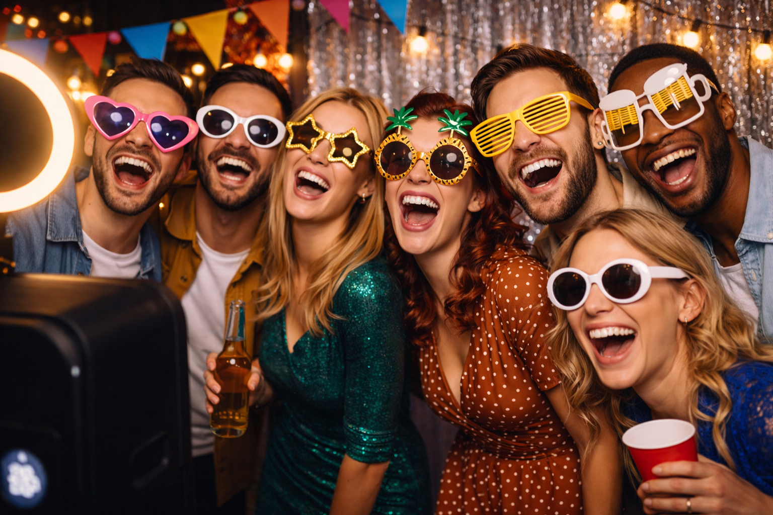 Nutzen Sie die lustigen Accessoires und Verkleidungen in unserer Fotobox für besondere Erinnerungsfotos.